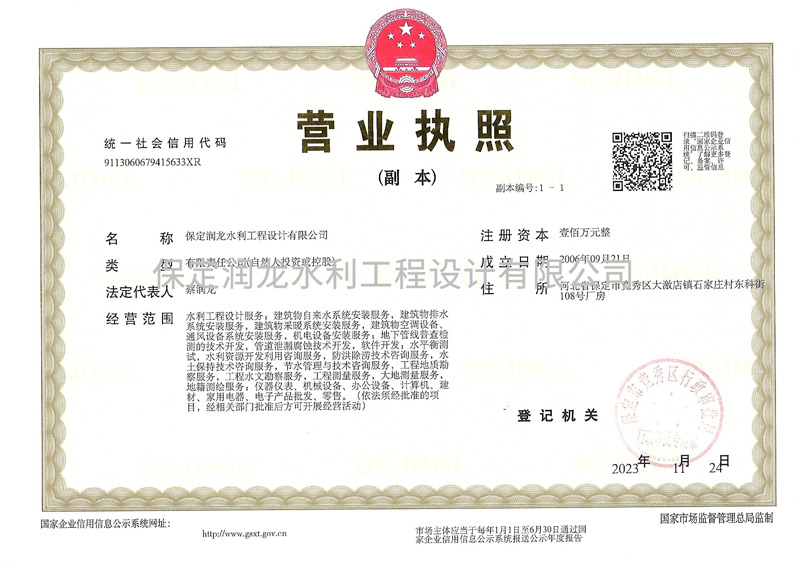 保定潤龍水利工程設計有限公司是一家專業化從事:水利工程技術開發、技術服務、技術轉讓;水利工程設計服務;水文地質調查與勘察服務;工程水文勘察服務;水文測量服務;水土保持技術咨地下管線探測、管道泄漏檢測、管網信息管理系統研發等技術服務的企業 ...